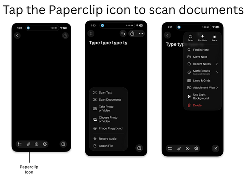 • Tap the Paperclip icon to scan documents