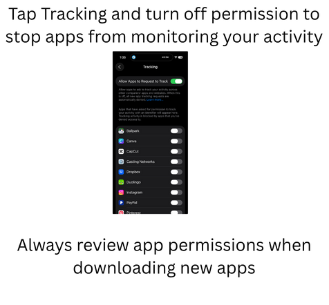 Your iPhone has powerful privacy tools to protect you. In this lesson, you’ll learn how to control what apps can access — like your location, photos, or microphone — and how to turn off tracking for better security.